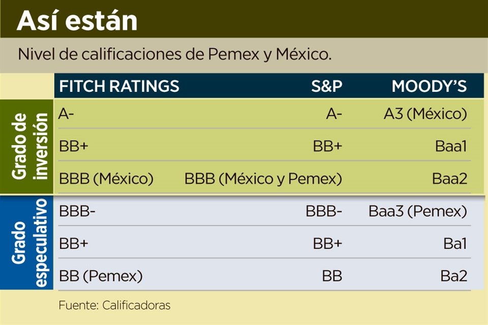 El último recorte de Fitch Ratings a la calificación crediticia de Pemex ubica a la compañía tres escalones abajo de la calificación soberana de México.