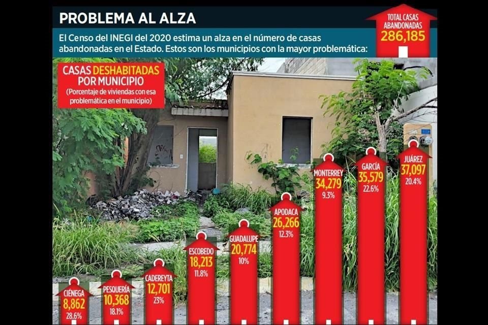 El número de casas abandonadas ha venido al alza en los últimos años en Nuevo León, trayendo consigo una serie de problemáticas sociales en diversos municipios, tanto metropolitanos como periféricos.