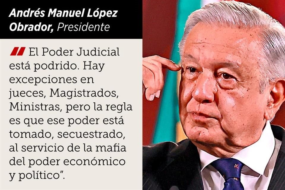 El Presidente de la República ve "podrido" al Poder Judicial y la bancada de Morena se apresta a tomar 15 mil millones de pesos del presupuesto de los jueces para dárselos al Poder Ejecutivo.