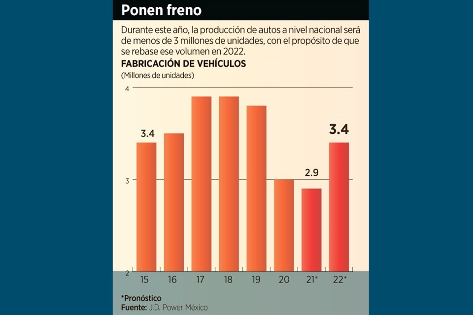 La producción de autos en México podría volver a los niveles mayores de 3 millones de unidades el próximo año, tras los efectos de la pandemia y la escasez de chips, estima la consultoría J.D. Power México.