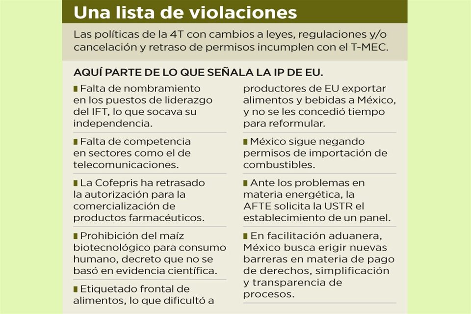 A tres años de la entrada en vigor del Tratado entre México, Estados Unidos y Canadá (T-MEC), la organización estadounidense Alianza para la Aplicación del Comercio (AFTE, por sus siglas en inglés) manifestó su preocupación por el incumplimiento de México en diversos sectores.