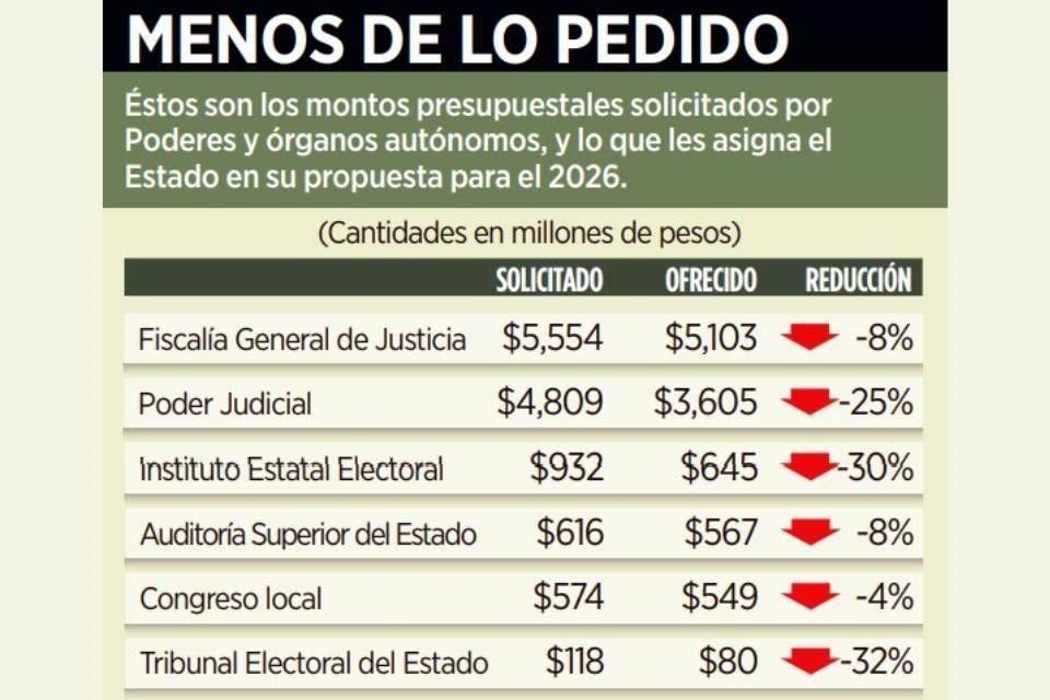 Ante la propuesta del Gobierno estatal de recortarles hasta un 32 por ciento los presupuestos que habían solicitado, Poderes y órganos autónomos alertaron que esto afectaría su operación y también proyectos contemplados para el próximo año.