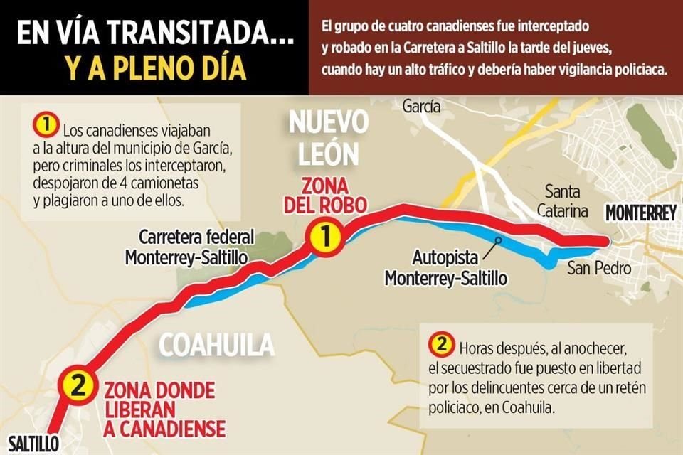 La oleada de inseguridad en Nuevo León afectó a un grupo de canadienses, que sufrió por horas la privación de la libertad de uno de sus integrantes y al que le robaron cuatro de sus cinco camionetas y más pertenencias.