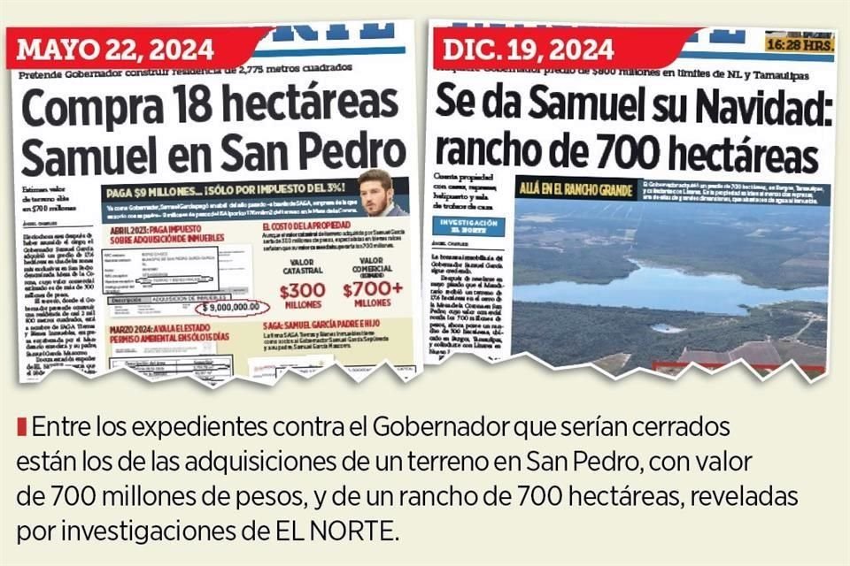 La Fiscalía General del Estado atrajo varias carpetas de investigación relacionadas con propiedades del Gobernador Samuel García y triangulaciones al despacho jurídico que comparte con su padre, para declarar el inejercicio de la acción penal en todas ellas.