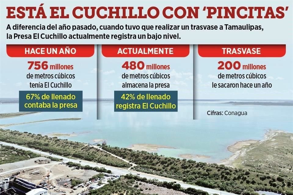 En medio de la sequía y los cortes de agua a la población, el abasto para el área metropolitana de Monterrey enfrenta una nueva amenaza: en máximo 10 días se deberá definir si la Presa El Cuchillo trasvasará o no a Tamaulipas.