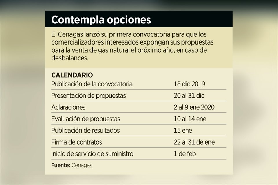El Centro Nacional de Gas Natural (Cenagas) lanzó la primera convocatoria con la finalidad de anticipar contratos para compra de gas natural en caso de presentar desbalances el próximo año y así contar con un respaldo.