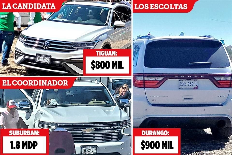 El convoy en el que viajan Delfina Gómez y su coordinador Horacio Duarte, por el Edomex, consta de 3 camionetas con valor total de 3.5 mdp. Crédito: Especial.