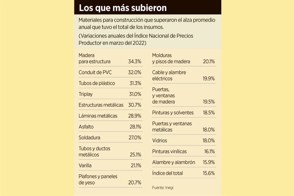 Los materiales para construcción en el País, a nivel fabricante, cerraron el primer trimestre del año con una inflación promedio anual del 15.6 por ciento.