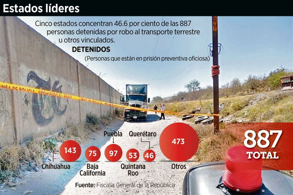 En tres meses, la autoridad ha puesto en prisión preventiva a 887 personas relacionadas con robo al transporte de carga.