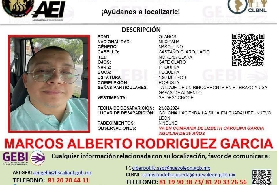 La Fiscalía General de Justicia emitió ayer un reporte de búsqueda de una pareja de jóvenes que desapareció cuando presuntamente regresaba de Mazatlán por carretera.