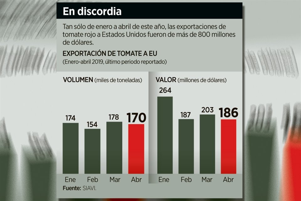 A casi dos meses que Estados Unidos aplicó una cuota al tomate rojo mexicano, las exportaciones de este producto se desplomaron 30 por ciento, lo que podría representar pérdidas superiores a 90 millones de dólares al sector.