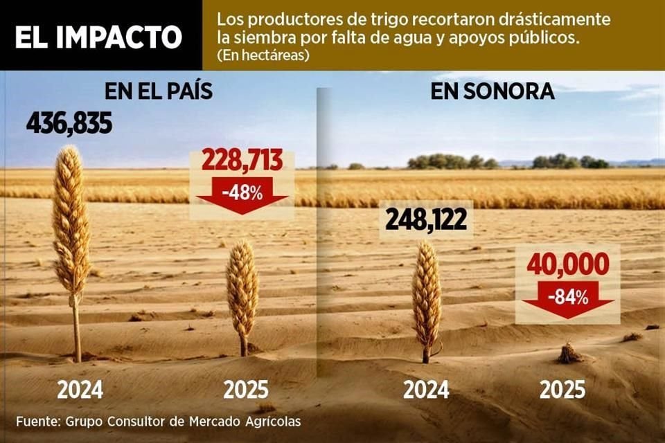 La siembra de trigo en el País en el último trimestre estará menguada por falta de apoyos y carencia de agua, lo que anticipa un escenario "catastrófico" para la producción del grano, de acuerdo con el Grupo Consultor de Mercados Agrícolas (GCMA).