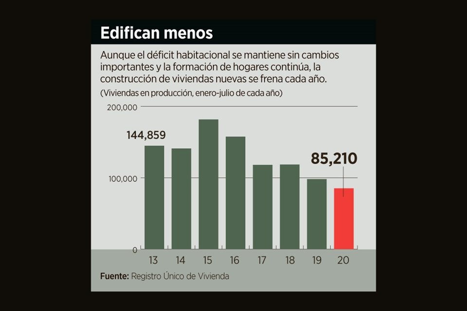 Para la producción de vivienda nueva, los 20 meses del actual Gobierno han representado un periodo en el que se registran las cifras más bajas de los últimos 8 años.