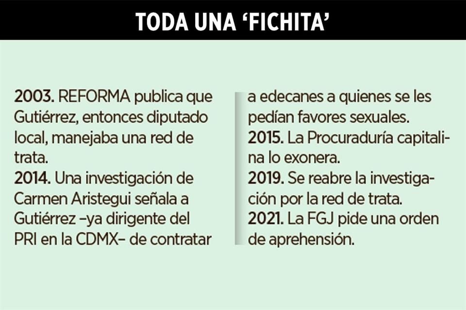 Cuauhtémoc Gutiérrez de la Torre, ex líder del PRI en la CDMX, fue detenido por su presunta participación en el delito de trata de personas, en su modalidad de explotación sexual, informó la Fiscalía General de Justicia de la Ciudad de México.