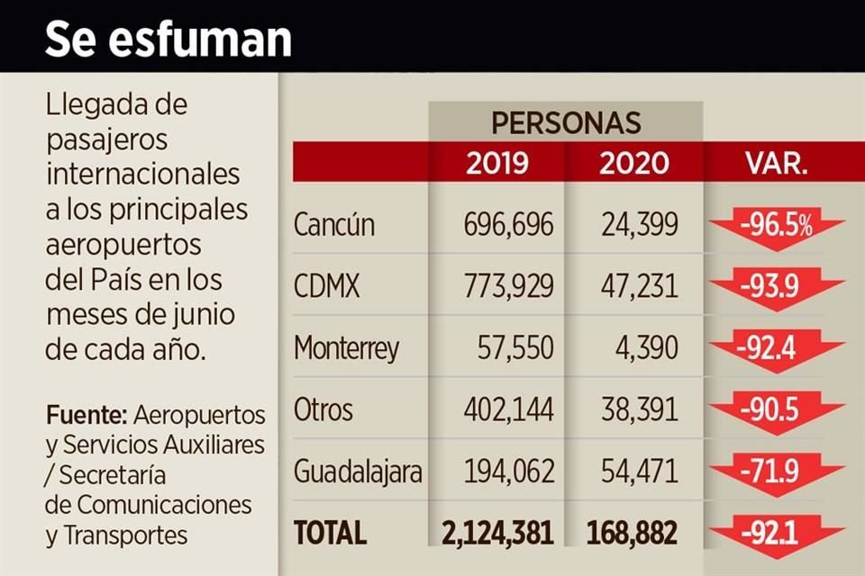 En el segundo trimestre de 2020, cuando la pandemia paralizó la actividad económica global, México recibió apenas 517 millones de dólares de ingresos generados por turistas internacionales.