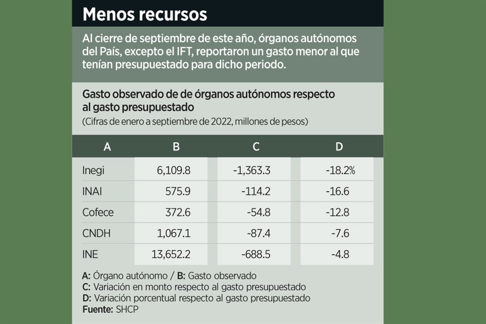 De enero a septiembre de este año, los órganos autónomos del País reportaron un gasto menor al que tenían presupuestado, y el más afectado fue el Inegi.