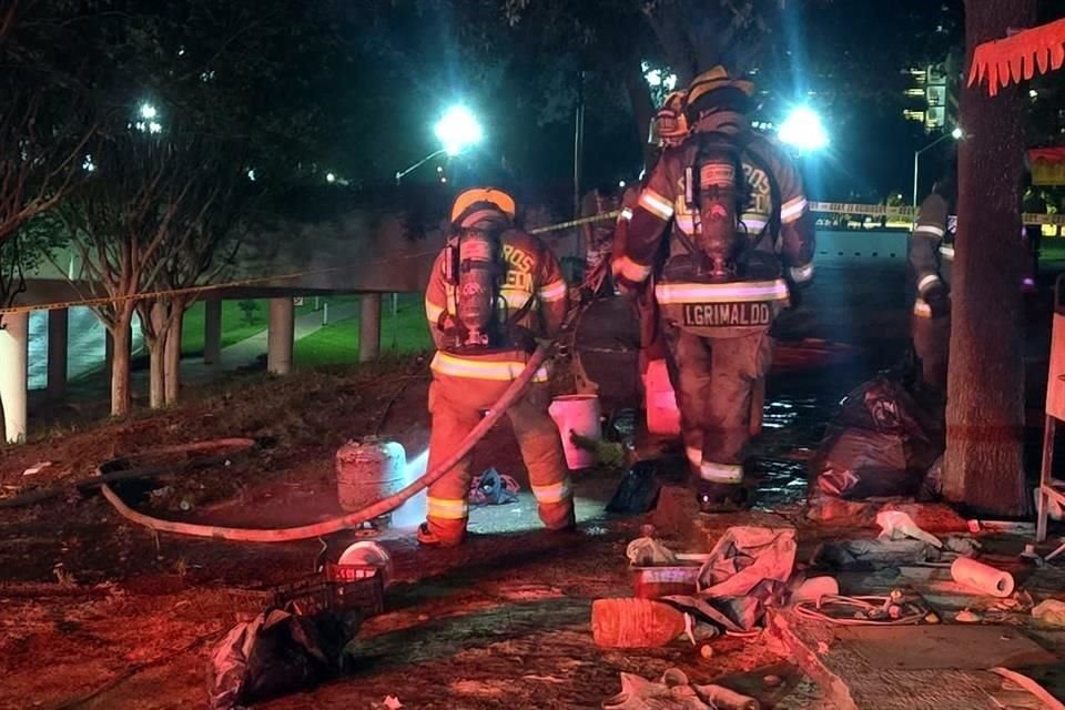 Justo cuando terminaba su jornada laboral en la venta de comida rápida en un carrito instalado a la orilla de la Macroplaza, un comerciante pasó un gran susto al generarse una fuga de gas y flamazo en el tanque del negocio, en Monterrey.