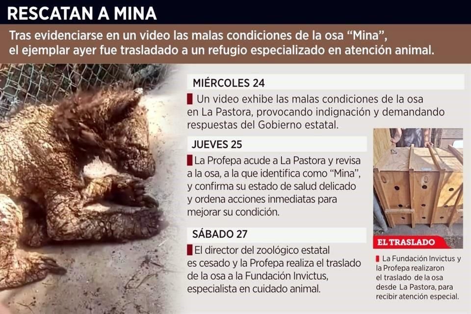 El miércoles, un video exhibió las malas condiciones de la osa en La Pastora, provocando indignación y demandando respuestas del Gobierno estatal. Crédito: Especial