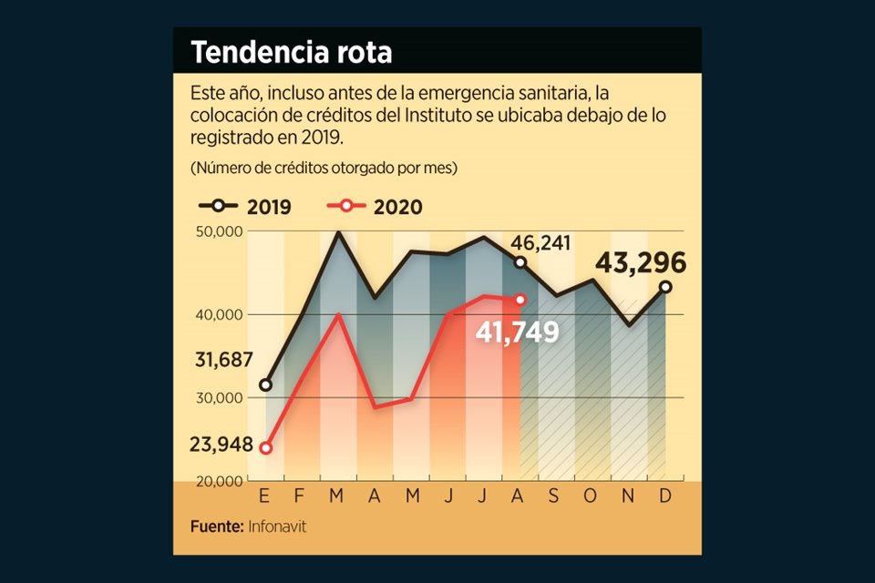 De enero a agosto de 2020, el Instituto del Fondo Nacional de la Vivienda para los Trabajadores (Infonavit) colocó 21 por ciento menos de créditos comparados con el mismo periodo de 2019.