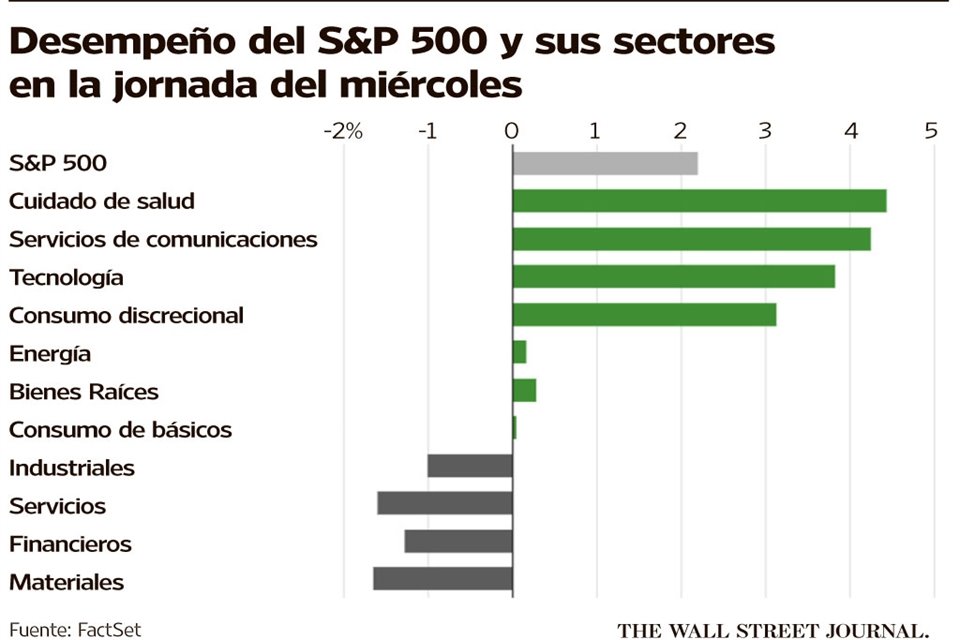 Wall Street reaccionó a los resultados electorales de Estados Unidos a medida que llegaban, impulsando un gran repunte en las acciones el miércoles.