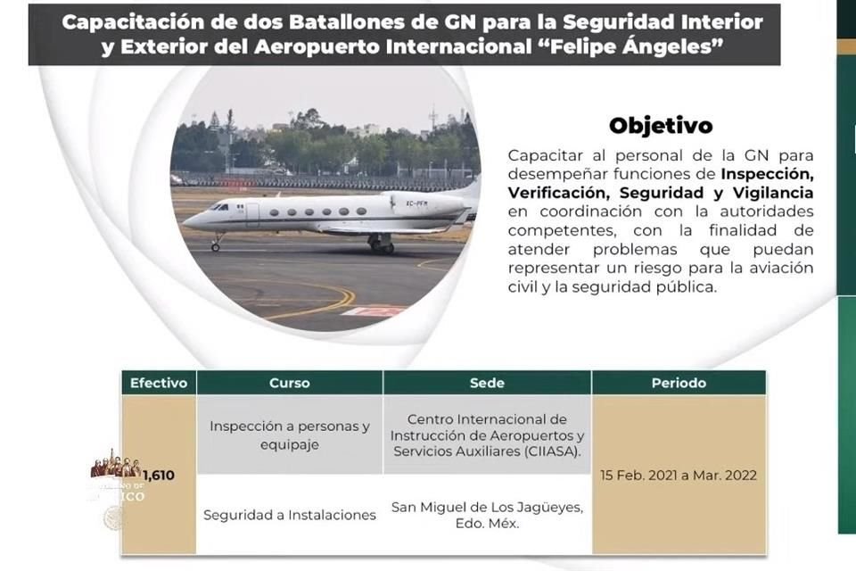 Agentes de la Guardia Nacional estarán a cargo de la seguridad interna y externa del nuevo aeropuerto de Santa Lucía.