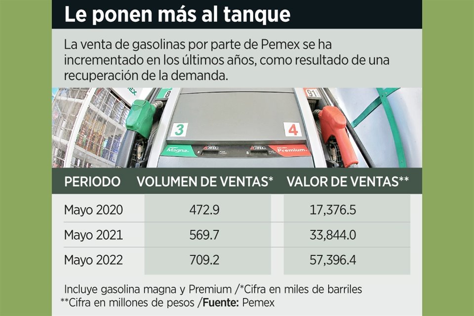 Petróleos Mexicanos (Pemex) incrementó en 49.9 por ciento la venta de gasolinas en el País durante el pasado mes de mayo, comparado con el mismo mes de 2020.