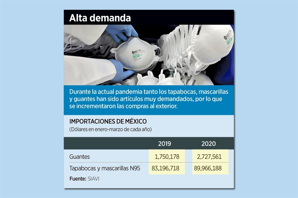 Las compras al exterior de cubrebocas y guantes quirúrgicos crecieron exponencialmente.