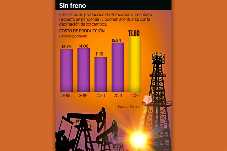 En un sólo año, producir petróleo a Pemex le costó 12.4% más, debido a varios factores, como mayor pago de regalías e inflación.
