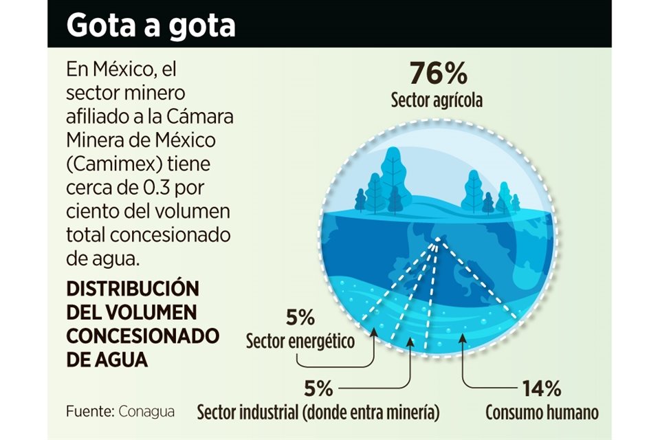 La Cámara Minera Mexicana (Camimex) aseguró que la minería es la industria que menos recursos hídricos ocupa.