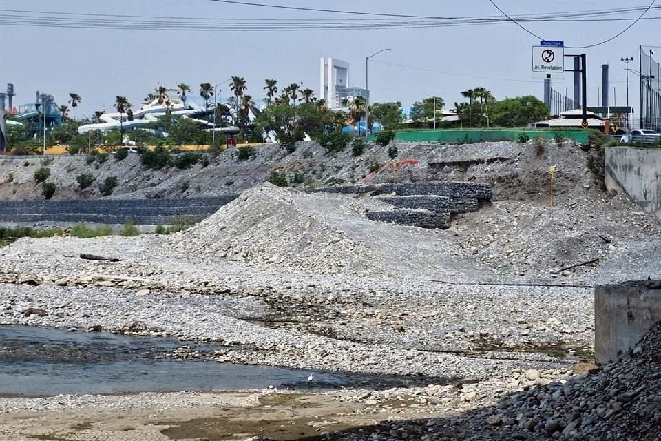 Mientras que las obras por la Línea 4 del Metro lucieron ayer sin maniobras para el retiro de tierra y escombro del Río Santa Catarina, pese al emplazamiento de la Comisión Nacional del Agua, otros rellenos invaden el lecho tras la construcción de muros en taludes del cauce.