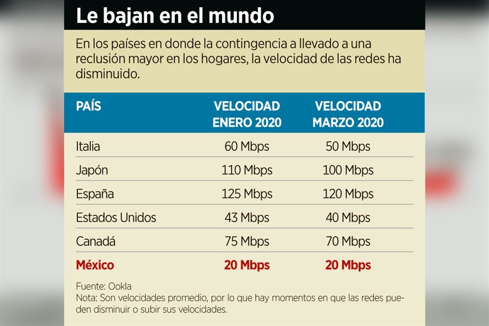 La velocidad de los servicios de internet fijo y móvil ha decrecido en algunos países como Estados Unidos y Canadá debido al cambio de hábitos de los usuarios por el Covid-19, y en México podría ocurrir también, según especialistas.