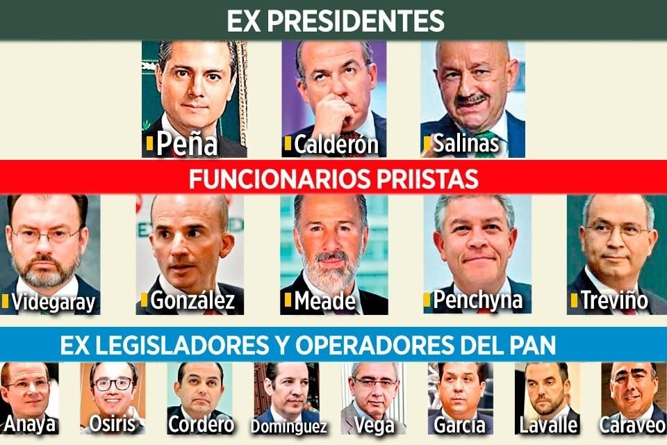 En la denuncia penal que presentó el pasado 11 de agosto ante la Fiscalía General de la República, Emilio Lozoya Austin acusó a 16 políticos y ex altos funcionarios, entre ellos los ex presidentes de la República Enrique Peña, Felipe Calderón y Carlos Salinas de participar en distintos hechos de corrupción y tráfico de influencias y de haber causado un daño al patrimonio nacional por sus ilícitos.