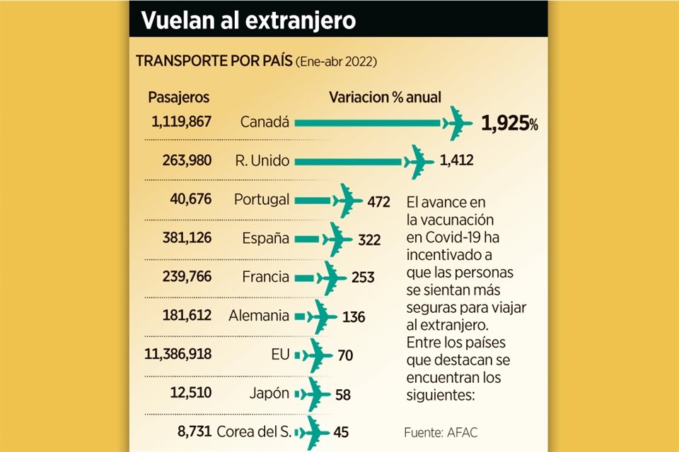 La degradación en seguridad aérea que enfrenta México ha sido bien aprovechada por las aerolíneas extranjeras que entre enero y abril pasados crecieron en número de pasajeros en 107.3 por ciento respecto al mismo periodo de 2021.