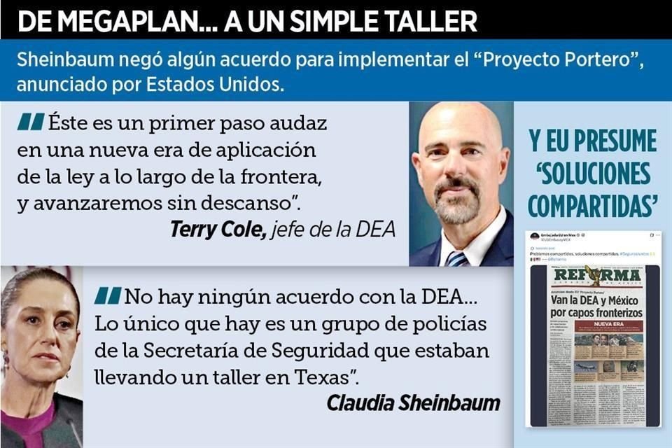 El Gobierno de México no tiene ningún acuerdo con la DEA, aseguró ayer la Presidenta Claudia Sheinbaum desacreditando la versión de la agencia estadounidense difundida el pasado lunes 18 de agosto sobre el operativo conjunto "Portero" para combatir capos en la franja fronteriza.
