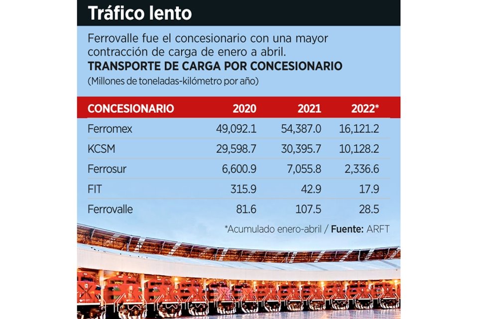 De enero a abril de 2022 se transportaron más de 28 mil 776.32 millones de toneladas por kilómetro por ferrocarril, una caída anual de 5 por ciento, señalan datos de la Agencia Reguladora de Transporte Federal (ARTF).