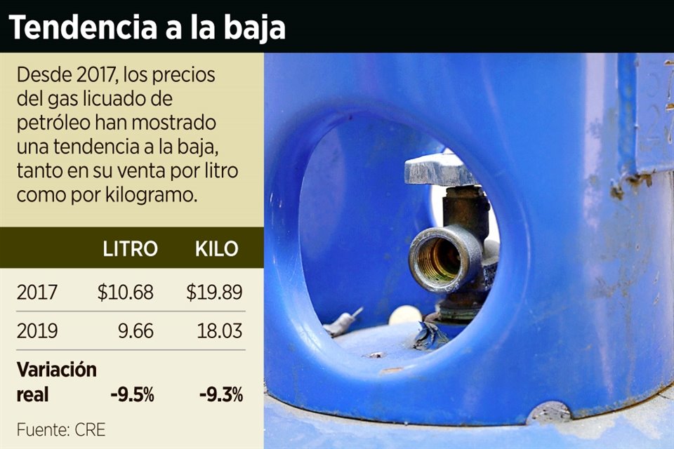 Desde 2017, el precio del gas licuado de petróleo (gas LP) ha caído 9.5 por ciento en su venta por litro y 9.3 por ciento en su venta por kilogramo, en términos reales.