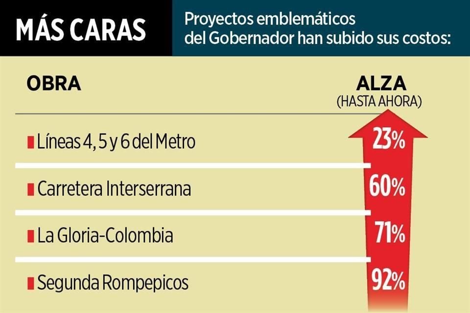 Proyectos de obra pública considerados como prioritarios en la Administración del Gobernador emecista Samuel García han disparado sus costos hasta en 92 por ciento en la primera mitad del sexenio... y aún falta para su conclusión.