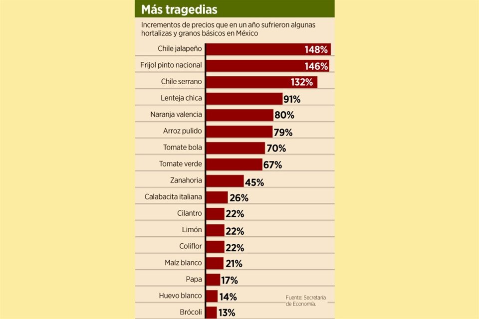 A la emergencia del Covid-19 en México se le sumó la calamidad de la carestía de los alimentos con alzas en precios de hortalizas y granos básicos de hasta casi 150 por ciento respecto al costo que tenían hace un año.