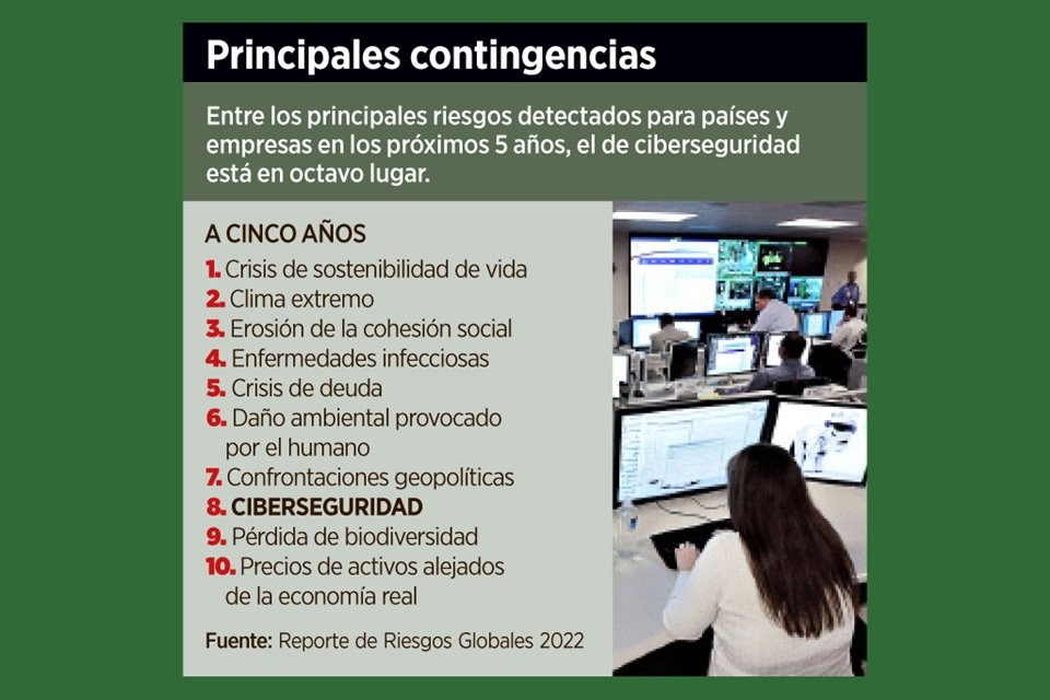 La ciberseguridad se mantendrá como un riesgo para las empresas y países por al menos un lustro más, según el Reporte de Riesgos Globales 2022.