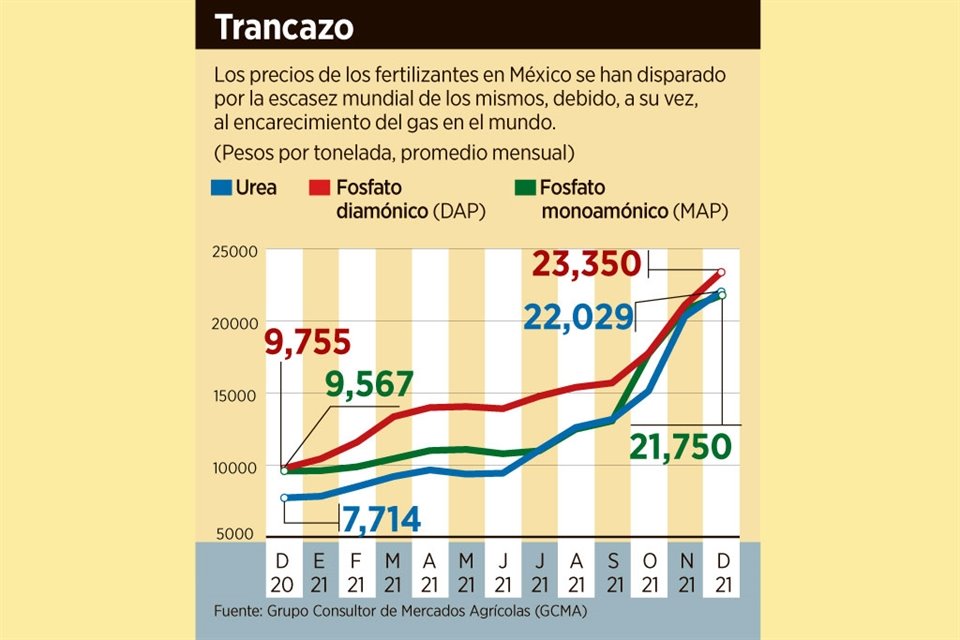 La escasez mundial de fertilizantes ha empeorado, y ante ello productores del campo y analistas advierten que la falta de ellos está poniendo en riesgo las siembras en el País, lo que a su vez dispararía aún más los precios de hortalizas, frutas y granos.