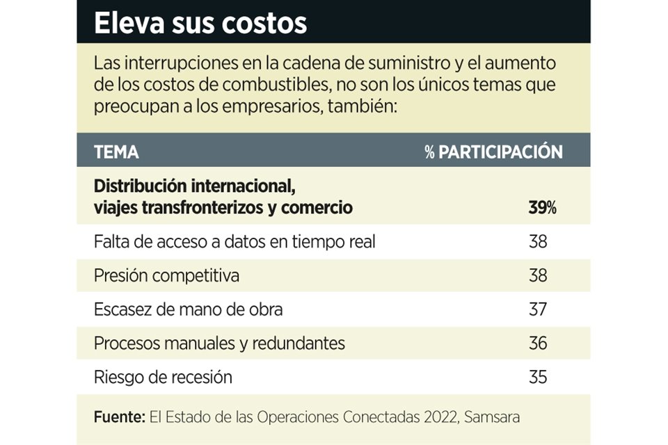 Al 47 por ciento de empresarios consultados que trabajan en la entrega de bienes o servicios, que cuentan con almacenes, flotas de vehículos y remolques, les preocupa el alza de los combustibles, reveló el Reporte Estado de las Operaciones Conectadas 2022.