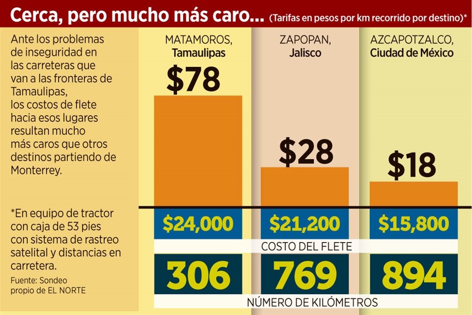 El transporte de carga en México disparó sus tarifas en los últimos seis meses debido a la menor oferta de servicio en rutas de alta incidencia de robo o por el costo de pagar partidas económicas de cobertura de riesgos o pérdidas.