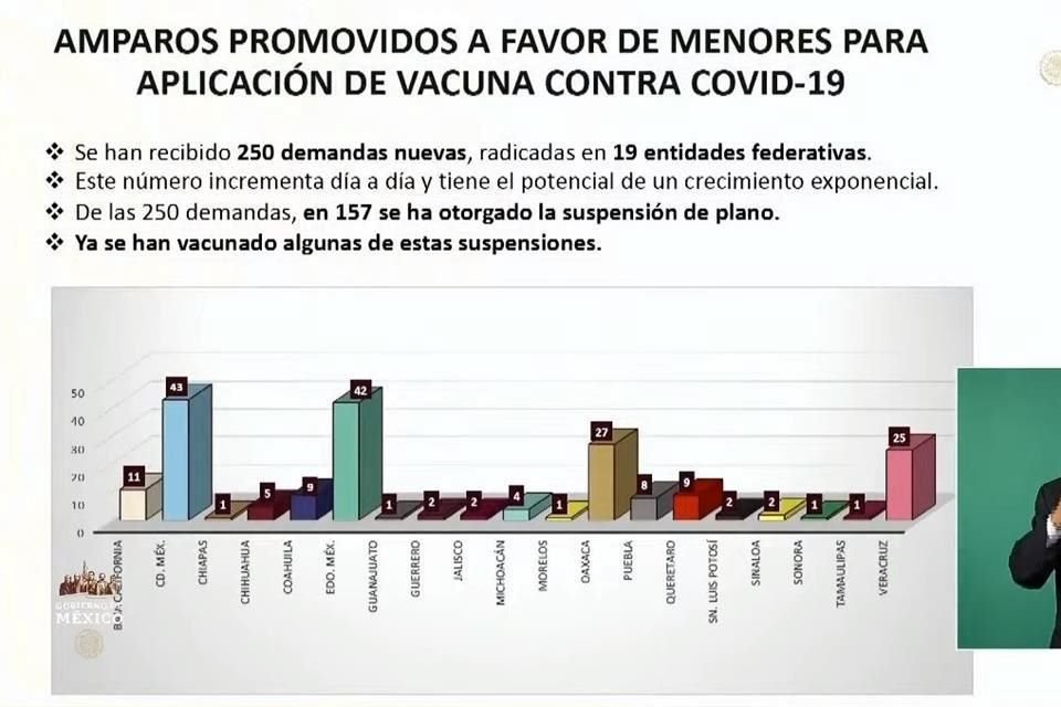 El Presidente Andrés Manuel López Obrador acusó que hay una campaña y una acción concertada detrás de los amparos para la aplicación de vacunas contra Covid-19 a menores de edad, pues 137 de los 250 recursos promovidos se concentran en cuatro entidades.