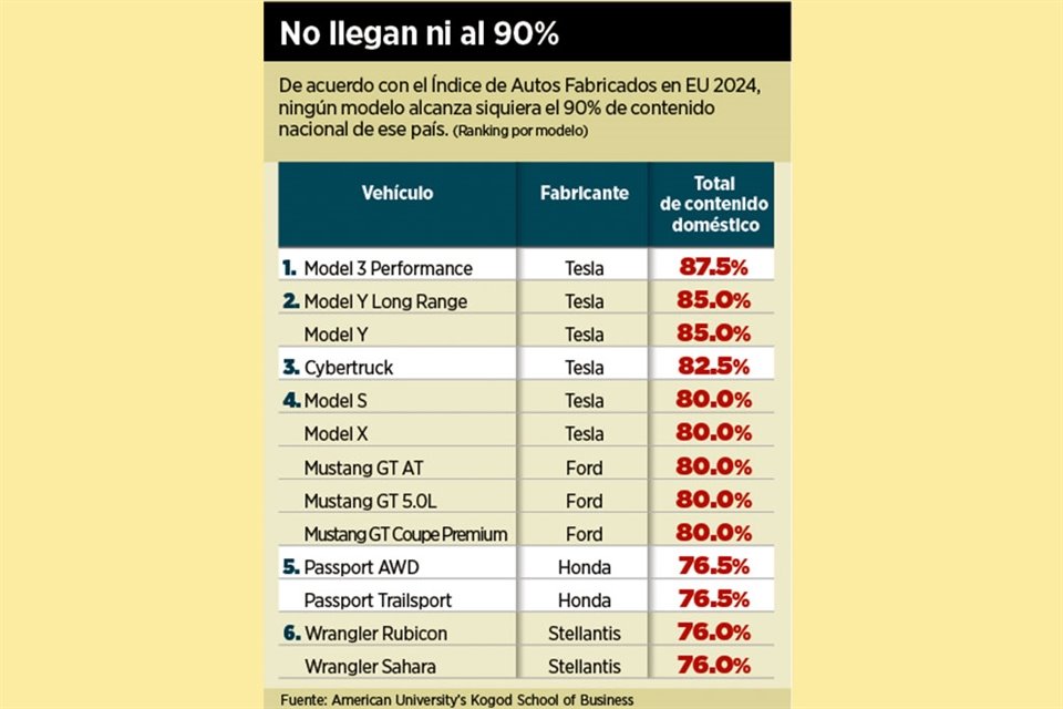 La Administración Trump ha implementado nuevos aranceles de 25% para todos los coches no hechos en EU y para ciertas piezas de automóviles, lo que ha generado dudas sobre el grado de fabricación estadounidense de sus vehículos, destacó MarketWatch.