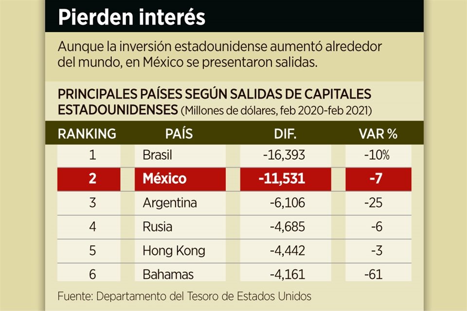 México se colocó como el segundo país que más inversión estadounidense vio retirarse al cierre de febrero.