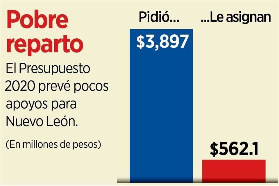 Aunque la Federación contempla dar a Nuevo León apenas un 14 por ciento de lo que solicitó, el Gobernador Jaime Rodríguez aseguró ayer que los proyectos solicitados por su Administración sí están incluidos en el Presupuesto 2020.