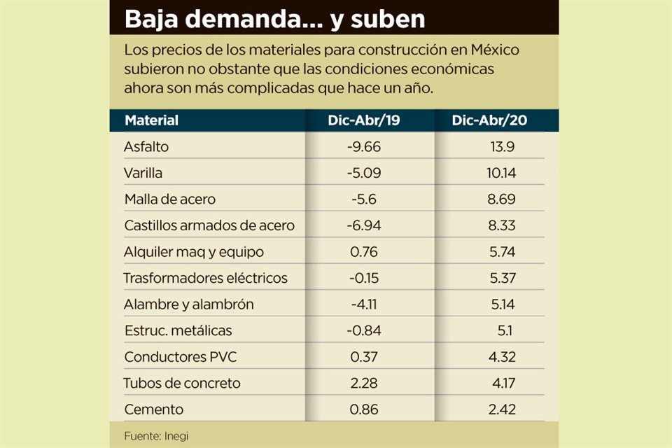 A la reactivación de la industria de la obra pública y privada en el País le espera una escalada de precios en materiales que se suscitaron, a pesar de la menor demanda de insumos que hubo en los últimos dos meses a causa de la contingencia por el Covid-19.