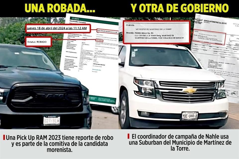 El empresario Arturo Castagné acusó que en el convoy de la candidata de Morena al Gobierno de Veracruz, Rocío Nahle, se utiliza una camioneta con reporte de robo y otra, que es propiedad del Ayuntamiento de Martínez de la Torre.