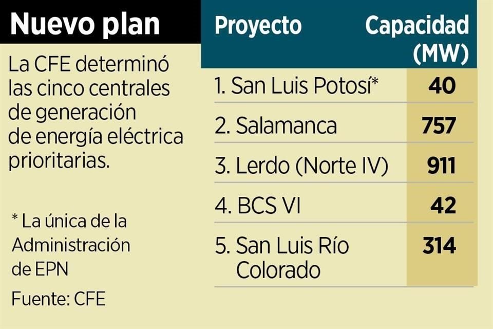 En medio de alertas por una mayor demanda de electricidad y problemas de abasto de gas natural, la CFE bajó el switch a los planes para licitar y construir siete centrales de generación previstos por el Gobierno de Enrique Peña Nieto.