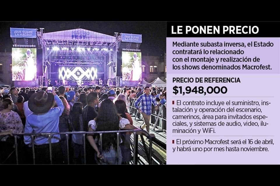 Los shows que el Gobierno del Estado montará cada mes en la Macroplaza, denominados Macrofest, generarán un costo de 2 millones de pesos mensuales... sin considerar aún el pago para los artistas.